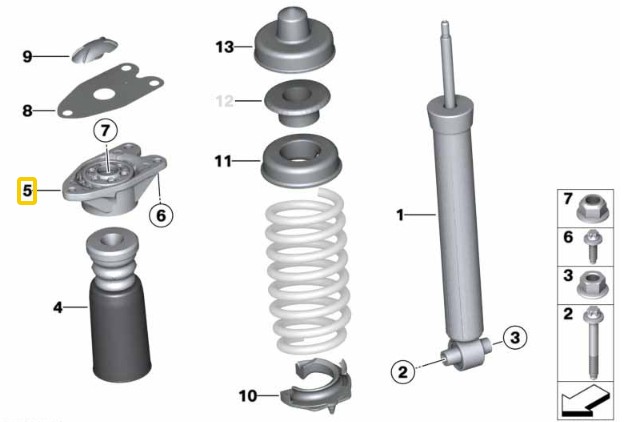Rear shock mounts with MS bearings BMW Fx, Gx